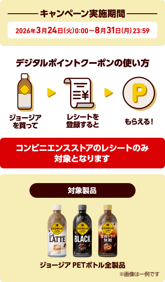 - ※コンビニエンスストアでジョージア製品を170円で購入したことを前提に付与ポイントを設定しております。